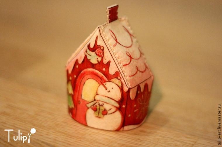 Это не очень сложно, только обратите внимание, что в трубе сверху нужно оставить незашитое отверстие, вот такой домик получается: