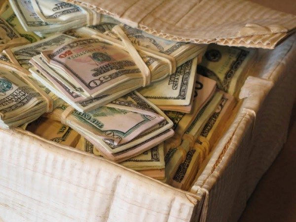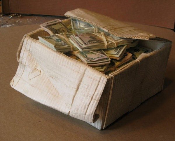 Рэндалл говорит, что денежные стопки сверху разукрашивать проще, чем нижние слои. Хотя сложно увидеть, но стопки уходят глубоко внутрь коробки под крышкой…