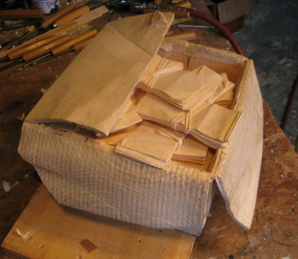 « … Острый инструмент и готовность начать работу. Я вижу в своей голове, но вместо того, чтобы сделать несколько больших отсечений, я делаю много маленьких … Однако я делаю их быстро. Единственное, что я делаю все немного большего размера, чем я действительно представляю как это должно быть. Позже я удаляю лишнее, и это потом придаст сложный вид. Это требует большего упорства, чем все остальное. Стопки денег выпадают случайным образом, и нет короткого пути, чтобы вырезать их зараз».