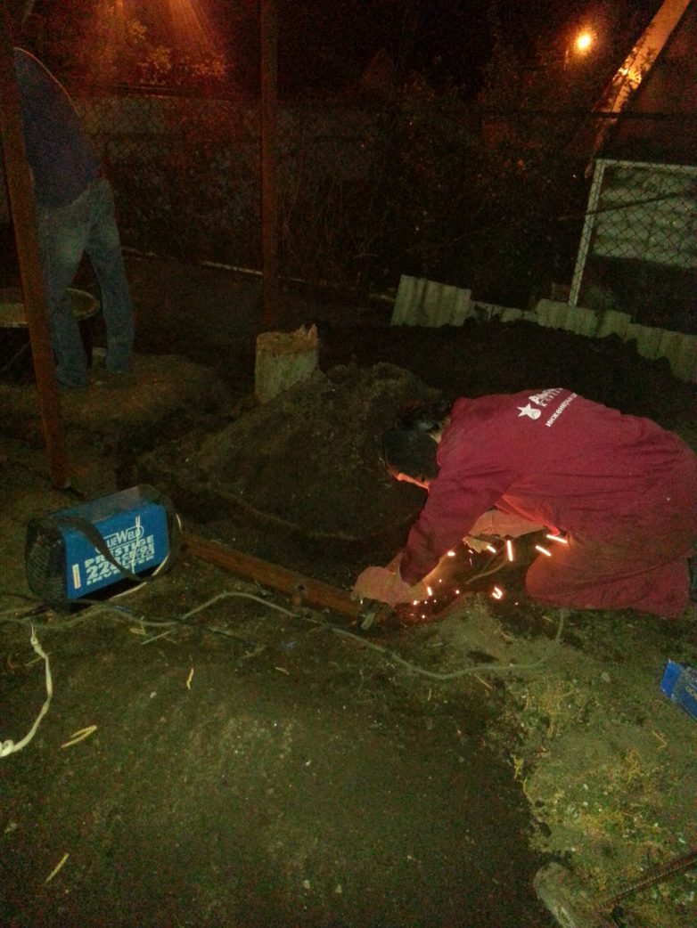 В общем копали ямки-траншейки, сваривали трубу и заливали бетоном основание. Времени было в обрез (до дня рожденья считанные дни).
