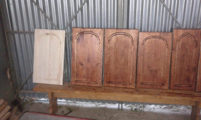 Вот фасады после покрытия морилкой и первым слоем лака пока еще без полировки и шлифовки