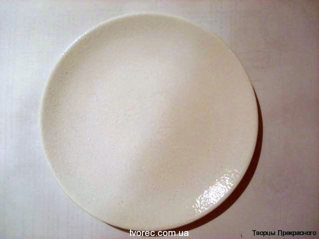 3. Готовим тарелку: обезжириваем (можно спиртом, можно жидкостью для мытья стёкол) и красим белой акриловой краской в 2 слоя. Между первым и вторым слоем краски дожидаемся полного высыхания. Покрываем 1 слоем любого лака на водной основе: акриловый или панельный (лаком покрываем для того, чтобы застраховать изделие от возможного появления «эффекта кракелюра» при взаимодействии акриловой краски и ПВА)