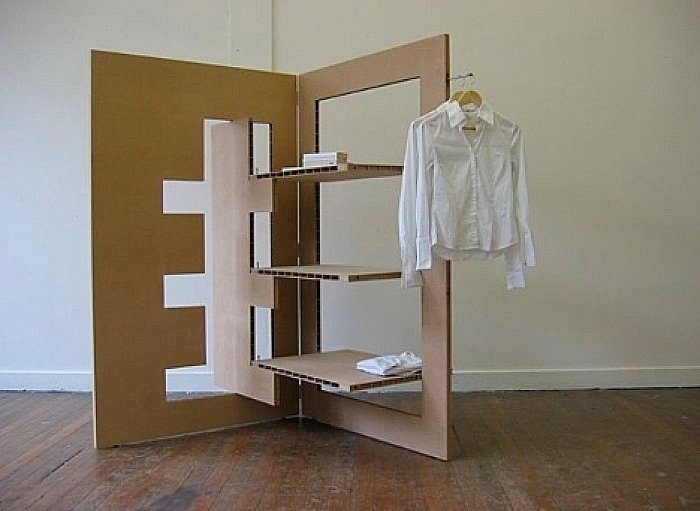 И в завершение самый простой и в то же время самый практичный и мобильный вариант — мини-гардеробная из картона. Стильно, дешево и индивидуально — вот три основные характеристики этого необычного предмета, так же, как и мебели из картона в целом. Создавайте удобную мебель своими руками — поверьте, никто не сделает это лучше, чем вы!