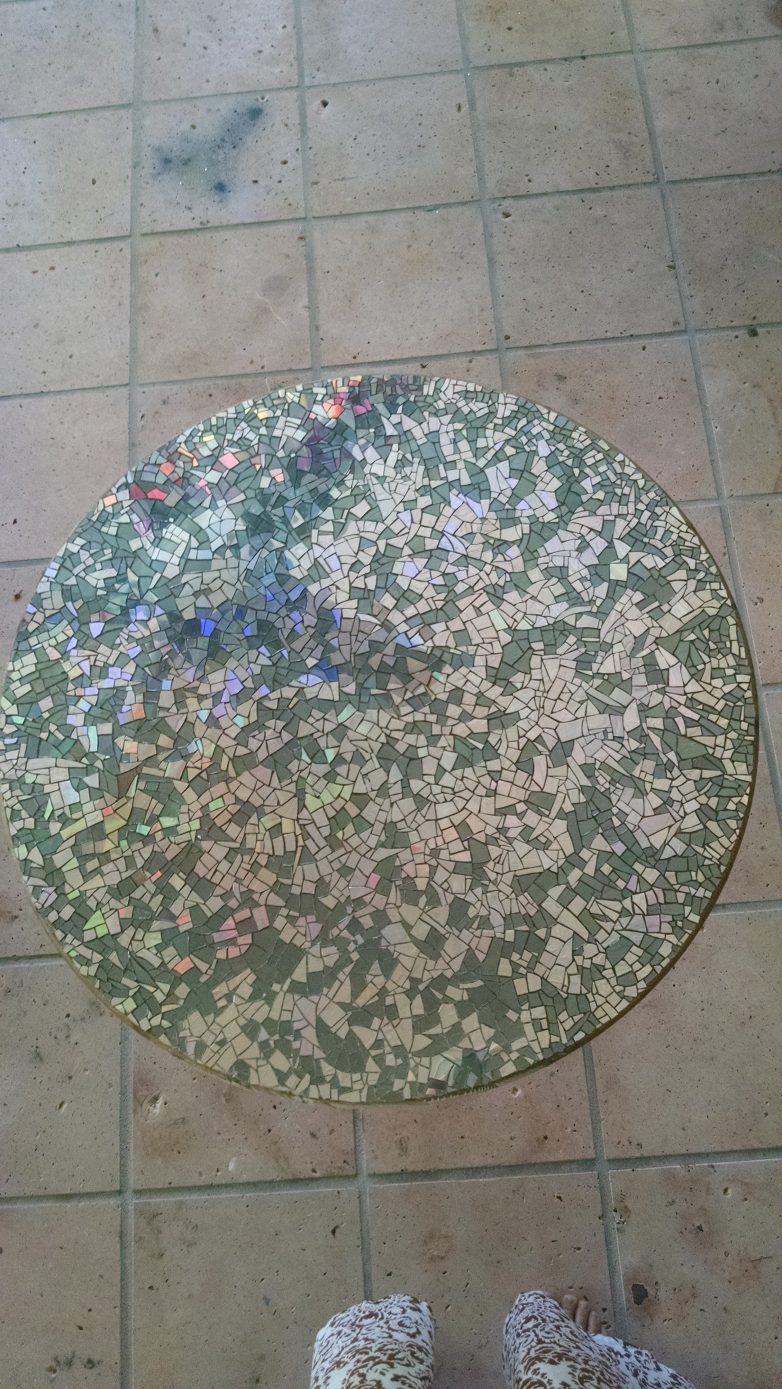 Мозаика этого стола выполнялась из обычных компакт-дисков