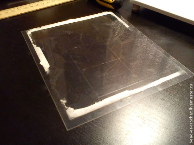 Теперь самое время заняться остеклением. Я использовала пластиковое окошко от подарочного пакета — очень удобно. Также вполне можно было стеклышек нарезать из обыкновенной пластиковой бутылки.