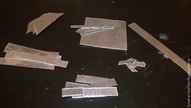 Так как ножницы у меня в распоряжении были огроменные для строительных работ, а детали довольно мелкие, то как я ни старалась, а все равно детали получились кривенькие. А может просто ручки у кого-то не оттуда растут, а? Если при нарезке детали деформировались, то их можно просто отбить молотком легонько на любой ровной твердой поверхности. Вот такой паззл у меня получился: