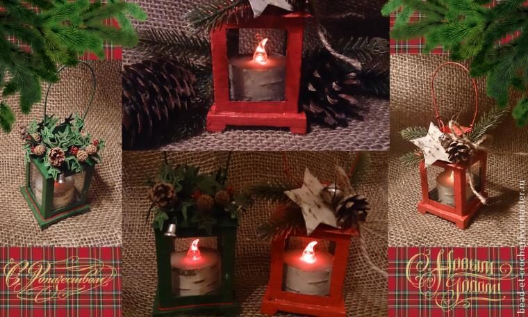 Для декора этого фонарика мне захотелось сделать венок из листьев падуба, его ягод, шишек и маленьких очаровательных колокольчиков.