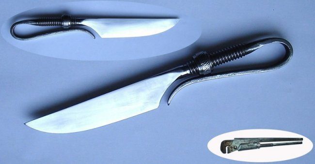 Очень симпатичный вариант ножа из газового ключа, с сохранившейся резьбой.