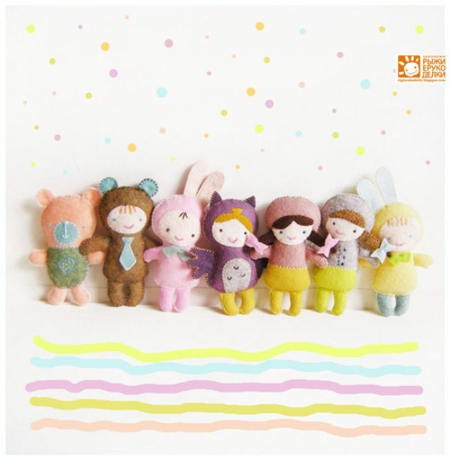 Таких вот фетровых малышей ростом не больше 12 сантиметров каждый делает художница из Красноярска Екатерина Осипова. Они очень яркие и жизнерадостные, все улыбаются и дарят заряд хорошего настроения, уюта и добра.