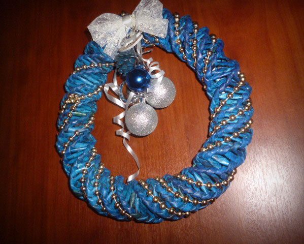 Очень мне понравился этот узор. Захотелось и дома создать праздничное настроение. За один вечер появился новогодний венок из газетных трубочек.