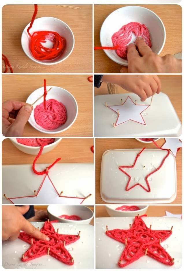 5. Когда нитка высохла, снимите ее с «установки», привяжите нитку или тесьму и можете вешать на елку.