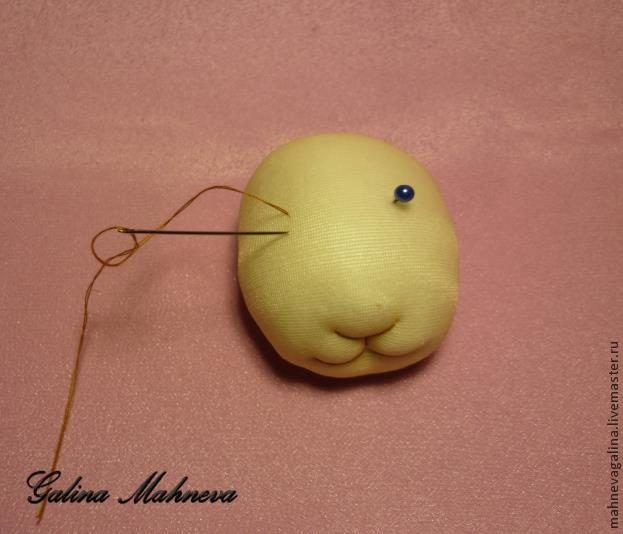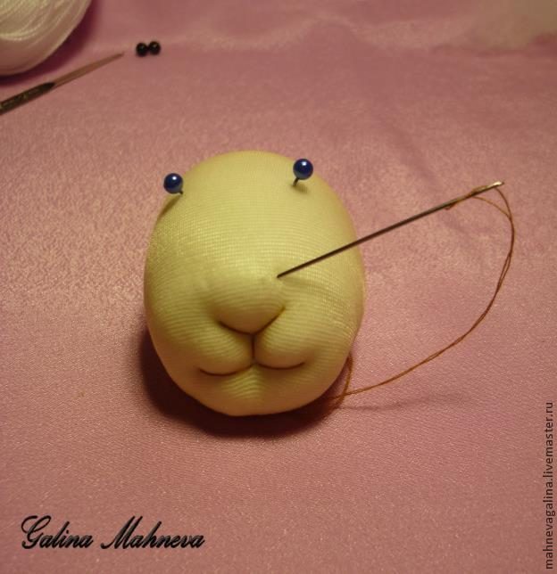 Если хотите сделать мордочку поуже, сожмите ее по бокам. Синтепон легко принимает нужную форму.