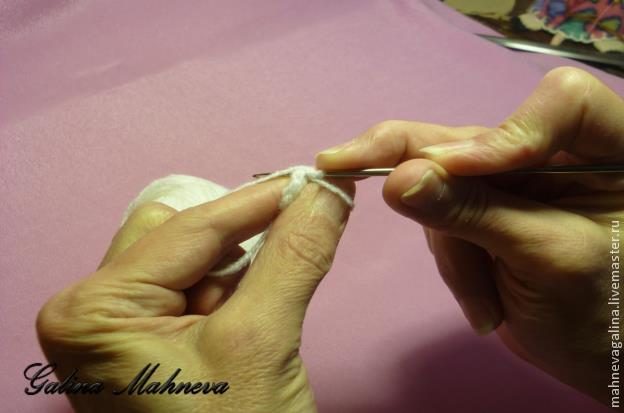 Делаем одну петлю для подъема и провязываем в кольцо 8 столбиков без накида.