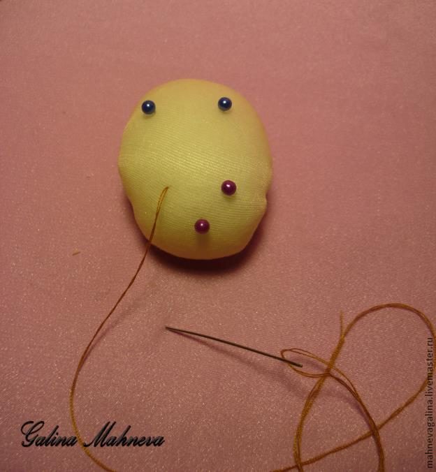Булавочками с шариками разметим глазки и носик.