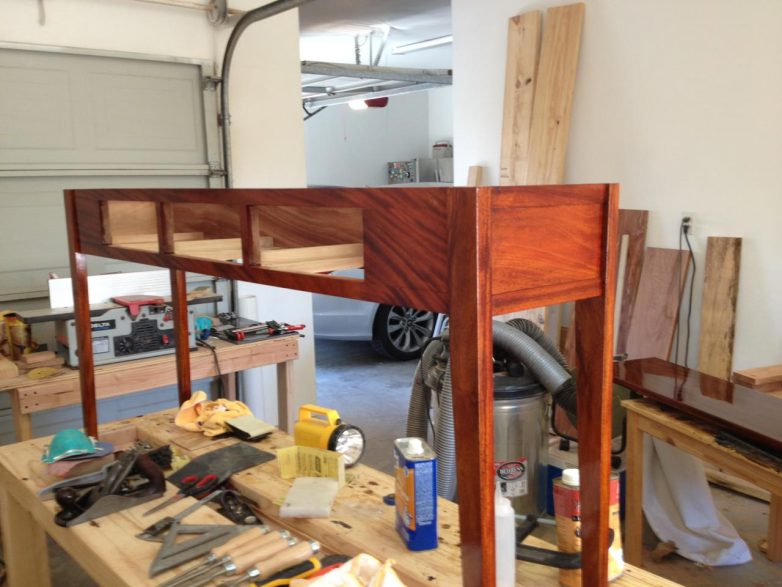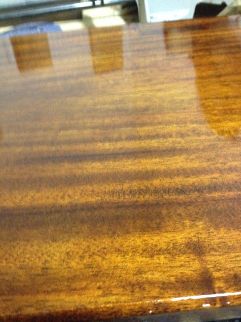 Для большего блеска, делаем мокрую шлифовку всех поверхностей, и наносим высокоглянцевый лак. Столик готов.
