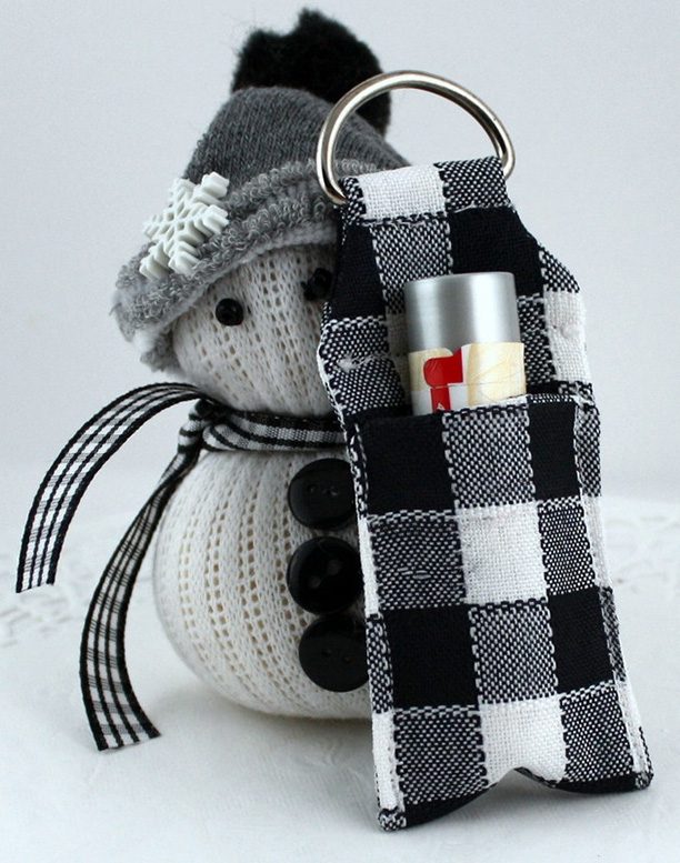 Милый чехольчик для гигиенической помады сооружается из небольшого лоскута и металлического колечка.