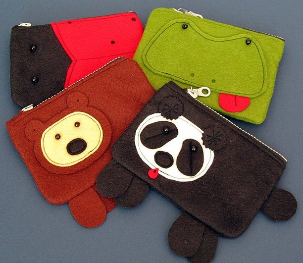 Чтобы соорудить зверские сумочки для всего на свете, достаточно обрезков фетра, нескольких бусин и застежки-молнии.