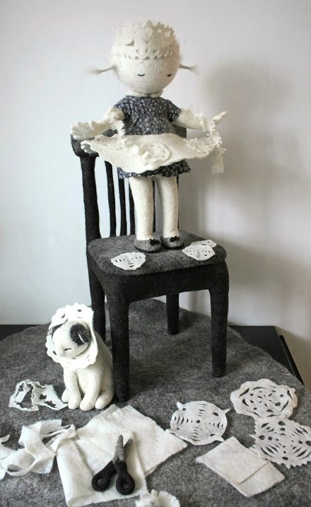 С помощью метода мокрого валяния Ирина создает невероятные скульптурные композиции, главными героями которых чаще всего выступают милые войлочные девочки, живущие в своем мире — среди шкафов, швейных машинок, пианино, диванов. Куклами свои работа мастерица никогда не называет — слишком уж живые они у нее получаются. А весь секрет в том, что процесс их создания наполнен вдохновением, удовольствием и любовью.
