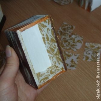 Ящички внутри решила тоже обклеить салфеточками. После высыхания клея покрываем лаком.