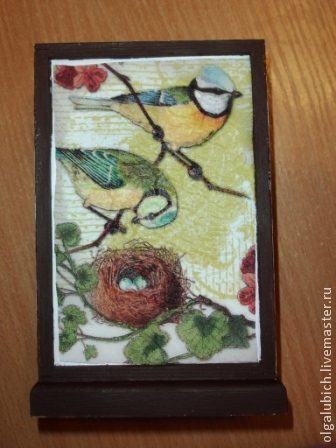 Когда салфетка высохнет, нужно сошкурить лишнее, так как салфетка, как правило, сильно растягивается. Покрываем лаком. Проходимся шкуркой.