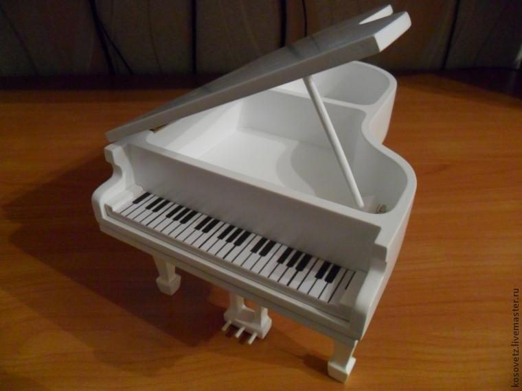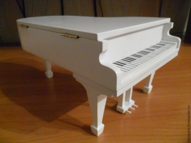 Всё красится в белый грунт, лакируется. Получается рояль-шкатулка: