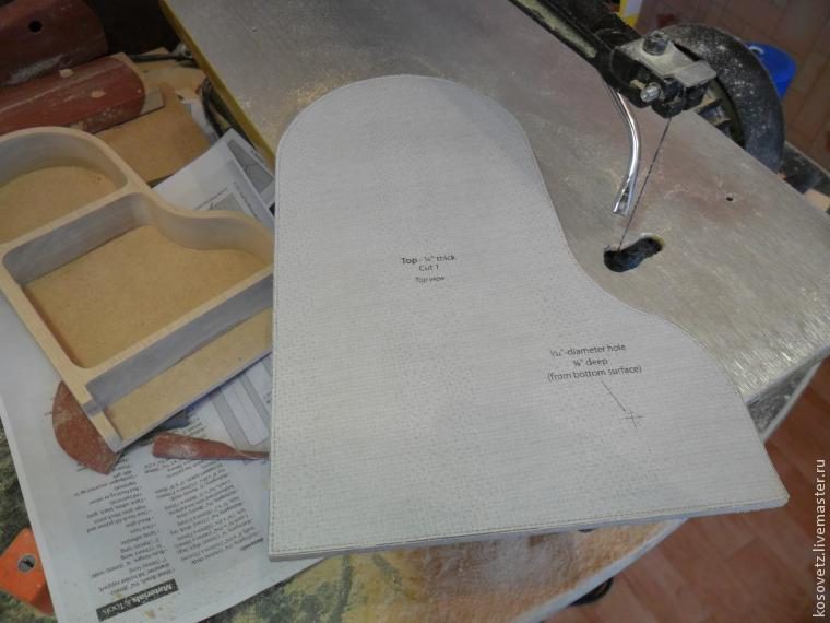 Я давно собирался сделать шкатулку-рояль (рассказывает автор), и, наконец-то, дело дошло и до неё. Я покажу вам весь процесс её изготовления. Чертёж был взят в интернете из журнала «Scroll-Saw-Woodworking-and-Crafts-2012-Issue-48».