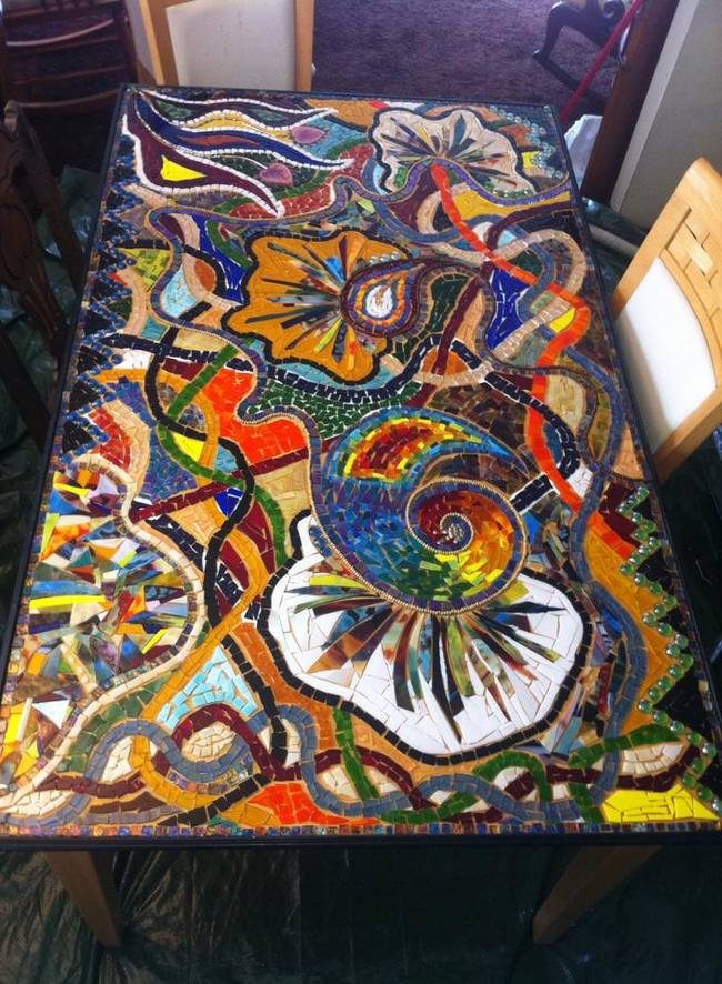 Всегда удивляет, как люди своими руками превращают обычные вещи в настоящие произведения искусства. Так, девушка превратила старую столешницу в сказочную мозаику.