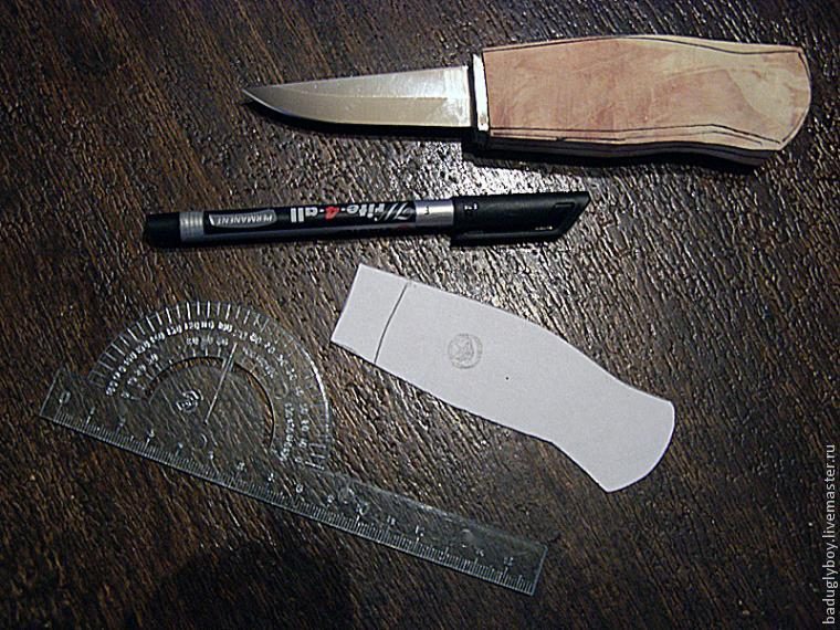 У нас есть шаблончик рукояти, с его помощью заново наносим контур на обе стороны.