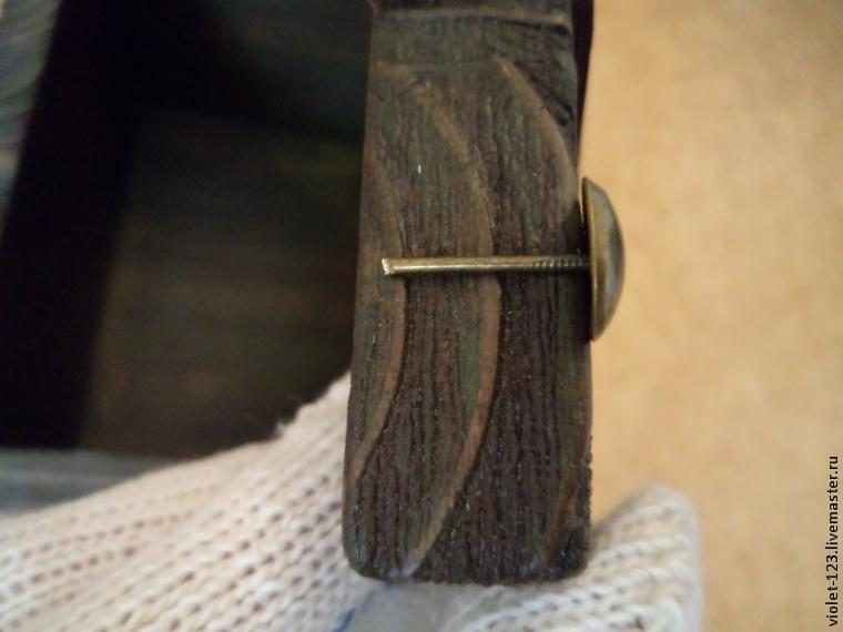 Используя обивочные гвозди, будьте внимательны. Длина стержня гвоздя не должна превышать толщину стенок сундука. В противном случае излишнюю длину нужно будет откусывать плоскогубцами.