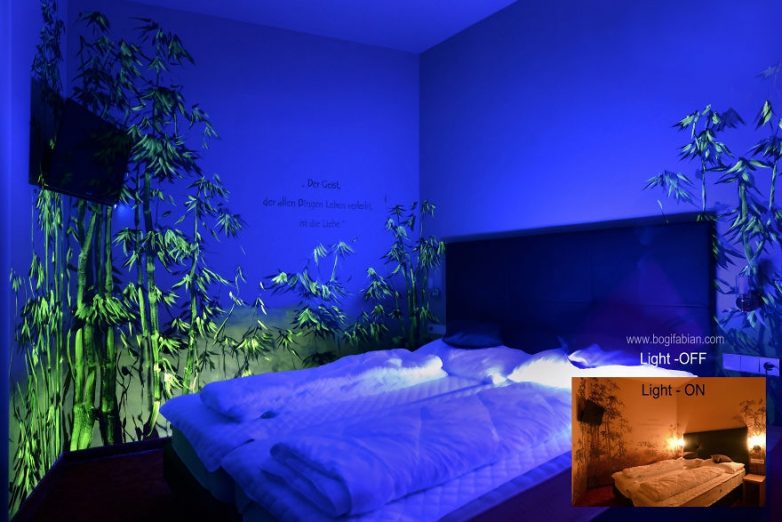 Художница венгерского происхождения Боги Фабиан (Bogi Fabian) создает потрясающие настенные рисунки, которые можно увидеть только в кромешной тьме. Свои работы Боги Фабиан может изобразить тремя способами: обычные «дневные» рисунки; росписи, которые можно увидеть только при помощи УФ-лучей и изображения, нанесенные фосфоресцирующими красками. Таким образом, после выключения света зрители вдруг оказываются в окружении светящихся звезд и космических облаков.