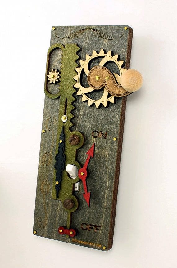 Надоели скучные и однообразные выключатели света? Представляем вам деревянные выключатели со сложными механизмами, состоящими из шестеренок, рычагов и точек опоры. Свет включить будет сложнее, но зато какой дизайн.