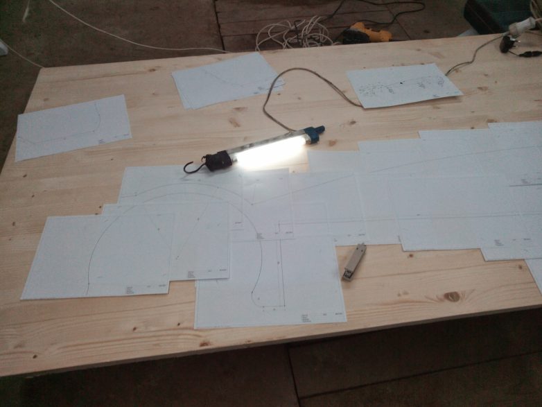 После нескольких часов с танцами, бубном и принтером удалось распечатать много много листов А4 с деталями. Масштаб на экране монитора, скотина, никак не совпадал с распечатанным на бумаге. Большое спасибо линейке приложенной к экрану и учителю математики, вспомнил пропорции умножение и деление)