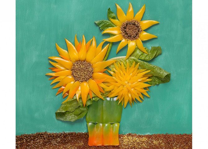 Российский фуд-стилист воссоздает известные картины мировой живописи. Однако, вместо красок она использует съедобные материалы: овощи, фрукты, мясо и другие продукты.