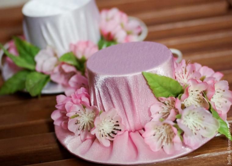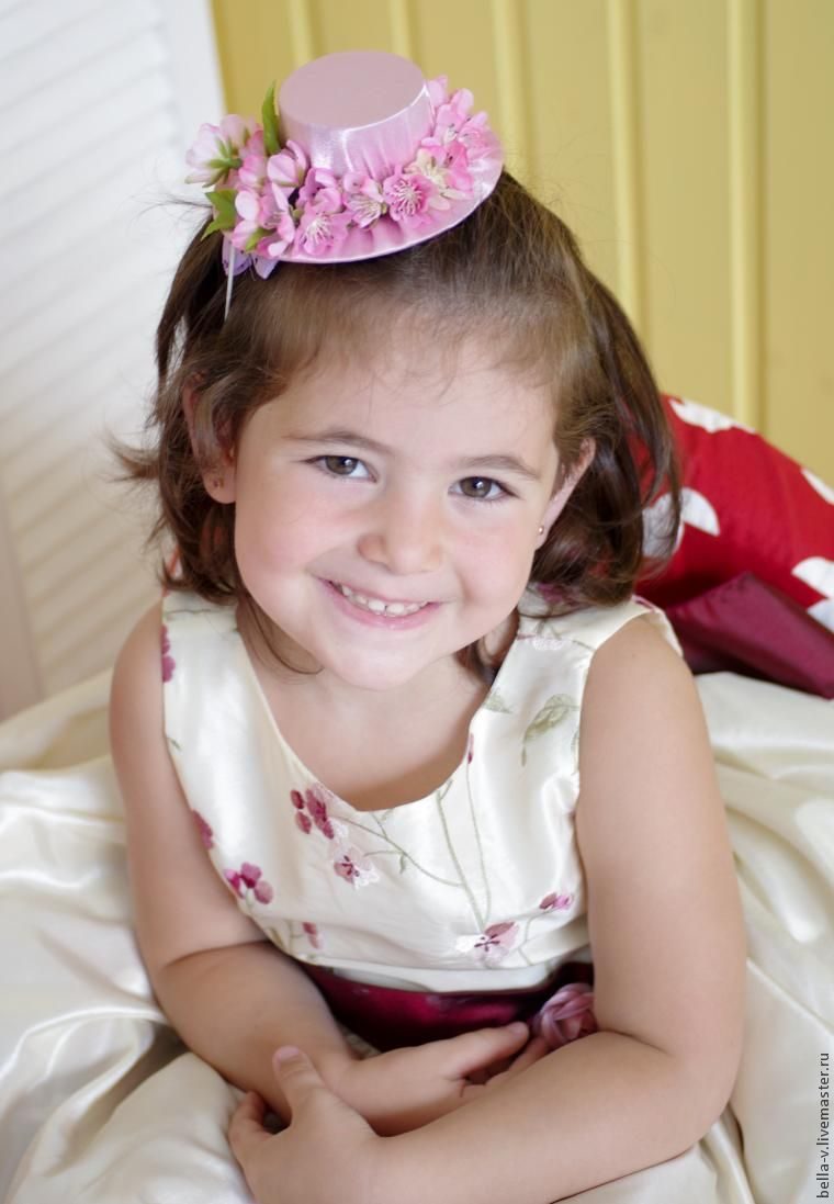 Вот такую забавную шляпку хочу вам предложить. Делала ее в ночь перед фотосессией. Клиентка позвонила и сказала, что платья разные у девочек. У одной — розовое, у другой — белое, и они в цветах. Оказалось, в цветах только одно. И я вдруг заметалась, распереживалась вся :) Решила, что мне аксессуаров не хватает.