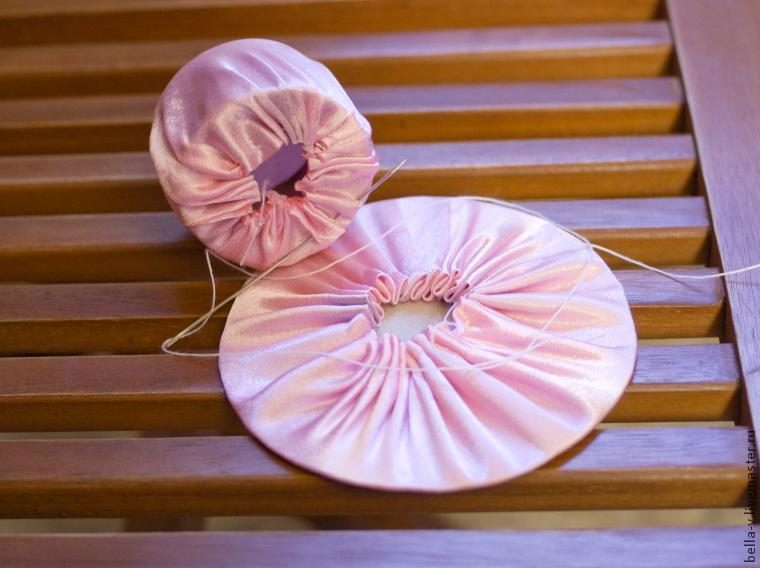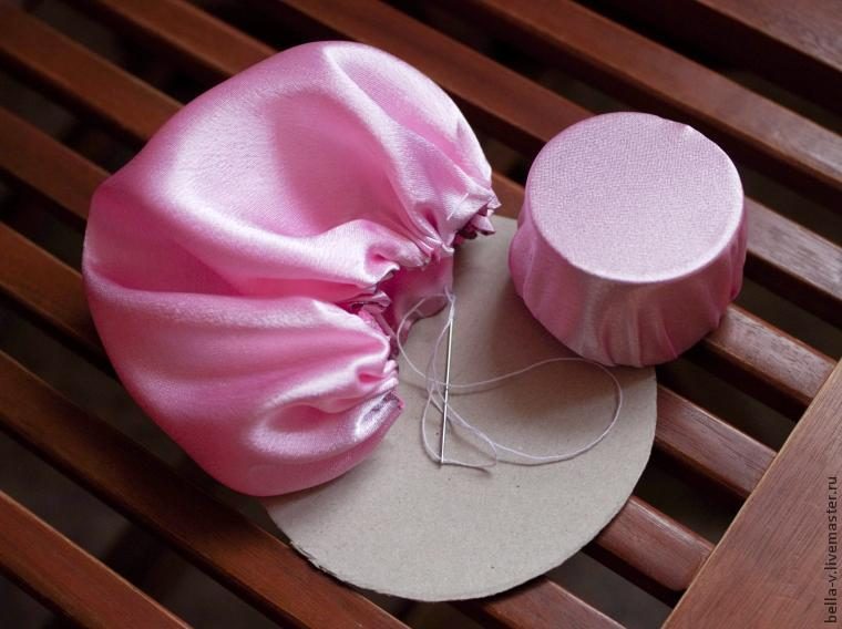 Швом «вперед иголку» собрали мешочки, внутрь спрятали картонки. Все стянули к центру.