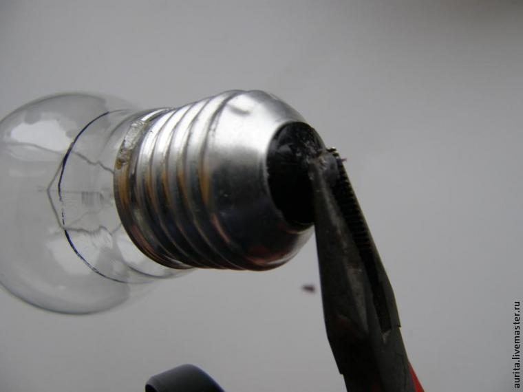 После того, как мы добрались до главной конструкции, нам нужно сломать штенгель и разбить стеклянную лопаточку. Все это делаем шилом, достаточно нежно, но уверенно. Устройство лампочки можно найти в интернете.
