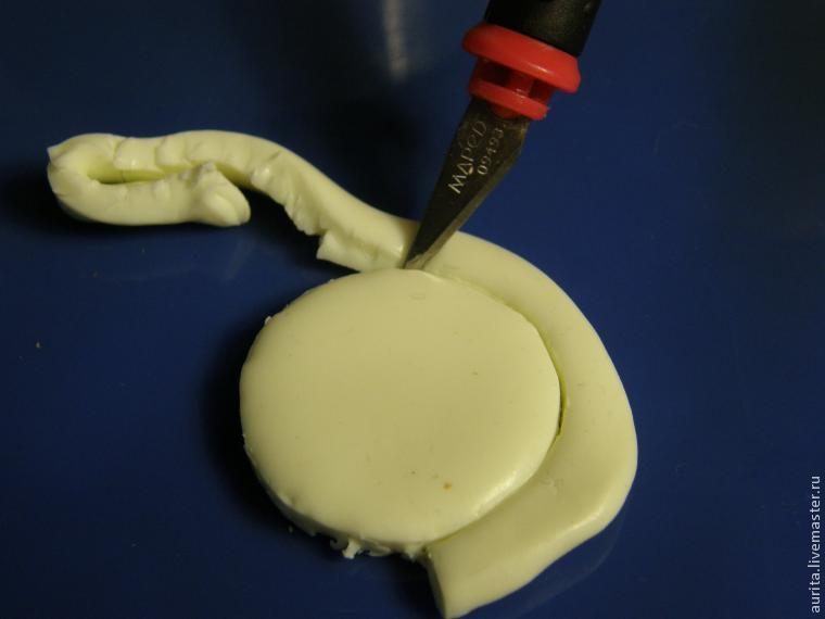 Дальше вырезаем круг ножом. Запекаем согласно инструкции к глине.