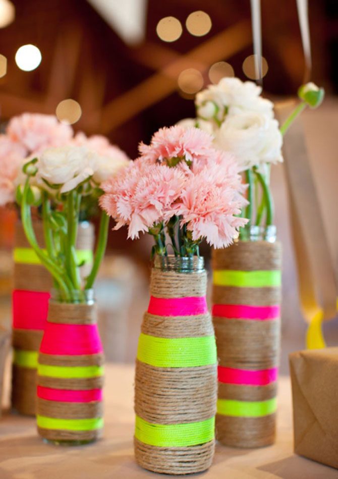 10 идей использования пустых бутылок в качестве декора для свадебного стола