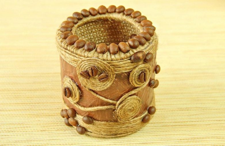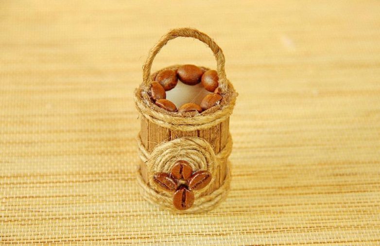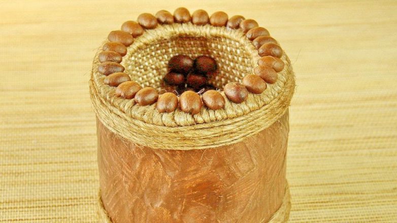 Оформляем при помощи веревки и кофейных зерен на свой вкус и фантазию.