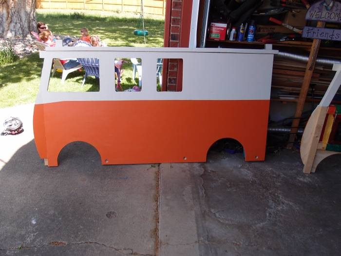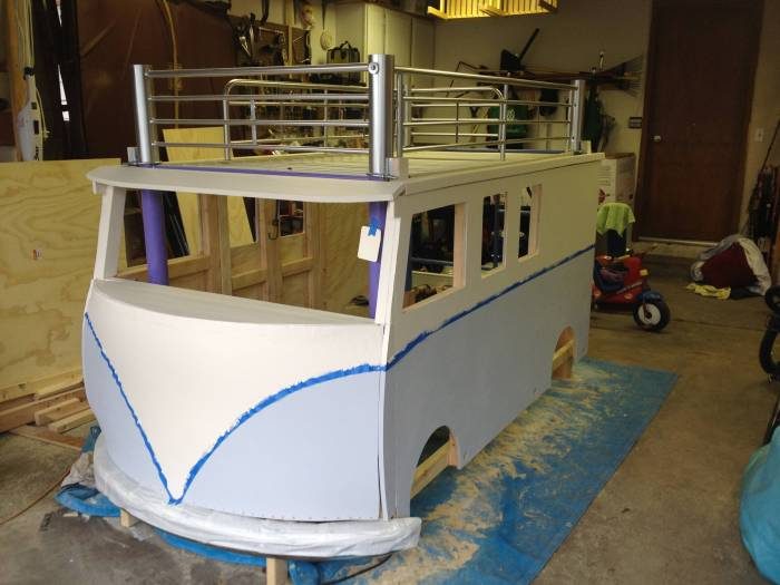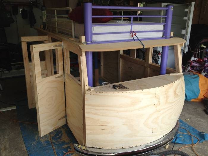 На день рождения дочери, которая любит играть с машинками, заботливый отец сделал ей оригинальный подарок своими руками — двухъярусную детскую кровать в виде фургона Volkswagen Type.
