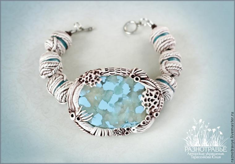 И ещё маленький секрет: если покрыть «камушки» парой слоёв глянцевого лака, то это даст очень красивый эффект глубины, и станут видны трещинки, скрытые за слоем полупрозрачной глины. В этом браслете я решила оставить без лака, мне так понравилось.