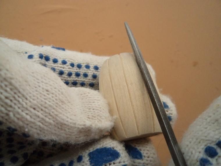 После нужно обработать углубление круглым напильником, а затем всю заготовку наждачной бумагой.