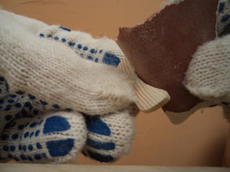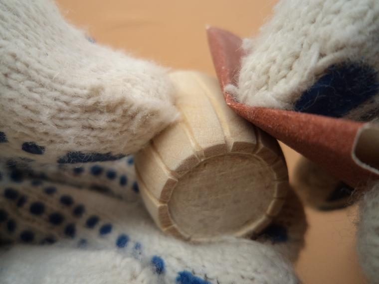 Теперь с помощью наждачной бумаги, обвернутой вокруг небольшого деревянного бруска, обрабатываем всю поверхность нашей заготовки, добиваясь гладкой поверхности изделия.