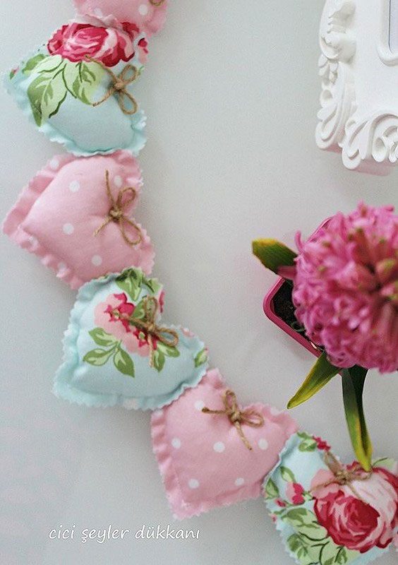 Посмотрим ряд примеров и мастер-класс по созданию мягких валентинок из ткани.