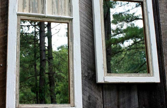 Зеркала способны визуально увеличить пространство. Можно использовать сами зеркала или изделия с отражающими элементами. Можно, например, установить на стене дома старые рамы со вставленными зеркалами вместо стекол, все это может создать иллюзию расширенного пространства.