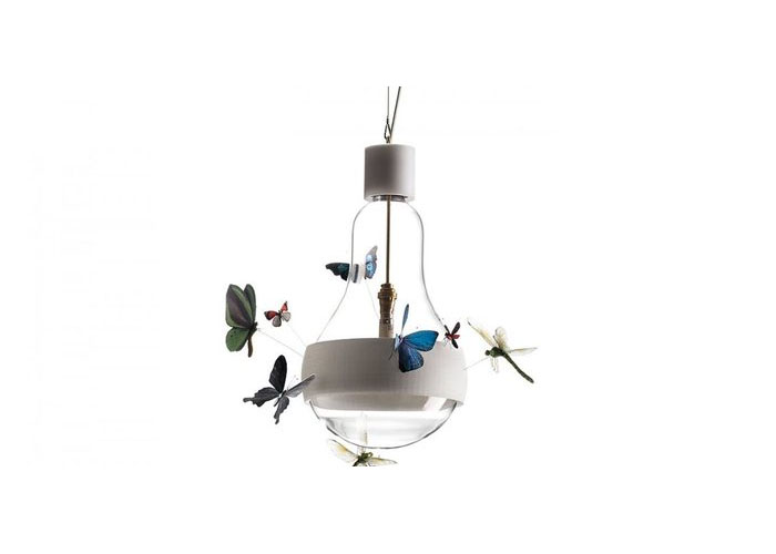 Инго Маурер решил создать светильник, вокруг которого будут виться очаровательные бабочки, мотыльки и стрекозы. Воплотить идею в жизнь дизайнеру помог Graham Owen (Грэм Оуэн), который вручную создает каждое насекомое.