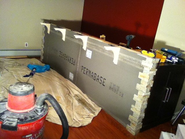 Искал простое решение, чтобы долго не возиться… и нашел. Установил 5 кухонных тумб.
