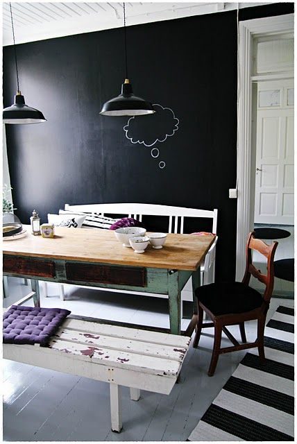 Их легко сделать, а после — с удовольствием использовать. Все, что вам нужно, это специальная краска. Существуют разные цвета, стена не обязательно должна быть черной. Посмотрите на эти замечательные идеи и дайте нам знать, что вы думаете. Наслаждайтесь…