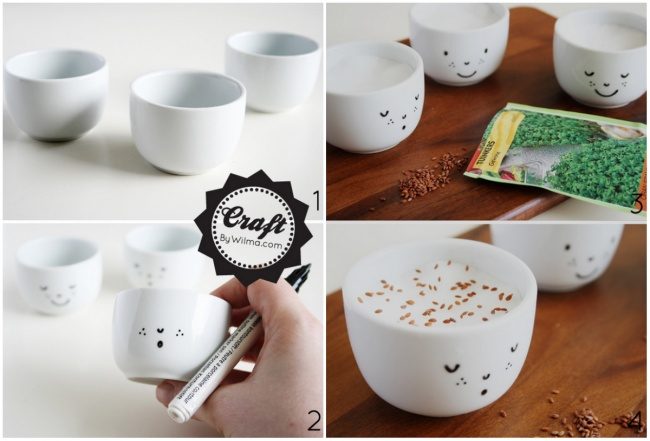 Берем чашку, маркер, ватный диск и семена. Далее — по инструкции.