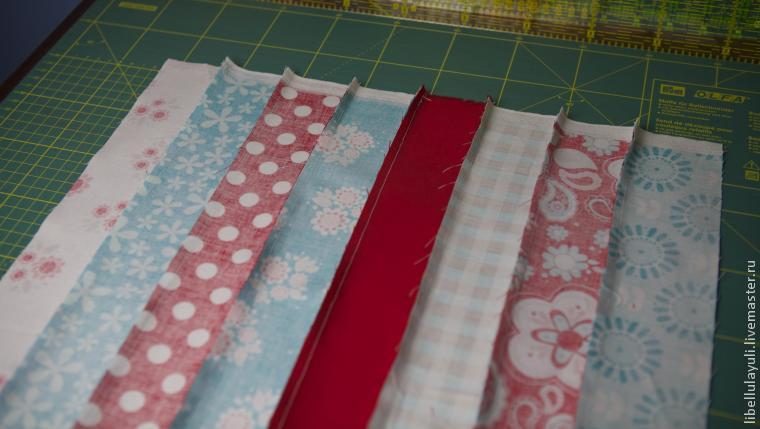 Когда полосы сшиты между собой, утюжим все швы в одну сторону. Получается следующее: